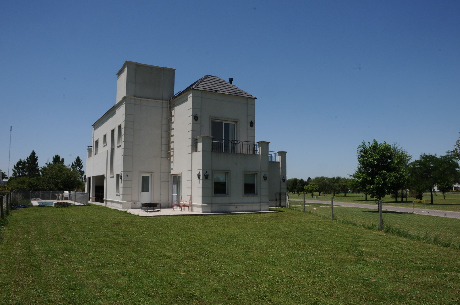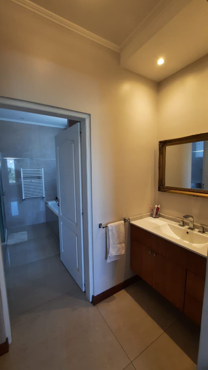 La propiedad también ofrece comodidades modernas como aire acondicionado, Internet, y WiFi. Entre sus características destacadas, se encuentran un hermoso jardín, una piscina refrescante, y un espacio destinado a parrilla, perfecto para disfrutar de reuniones al aire libre. Además, cuenta con 2 cocheras semicubiertas y estacionamiento para visitantes, garantizando comodidad para ti y tus invitados. El barrio privado brinda seguridad y acceso a excelentes instalaciones recreativas, incluyendo canchas de básquetbol, fútbol y paddle, así como un club house.